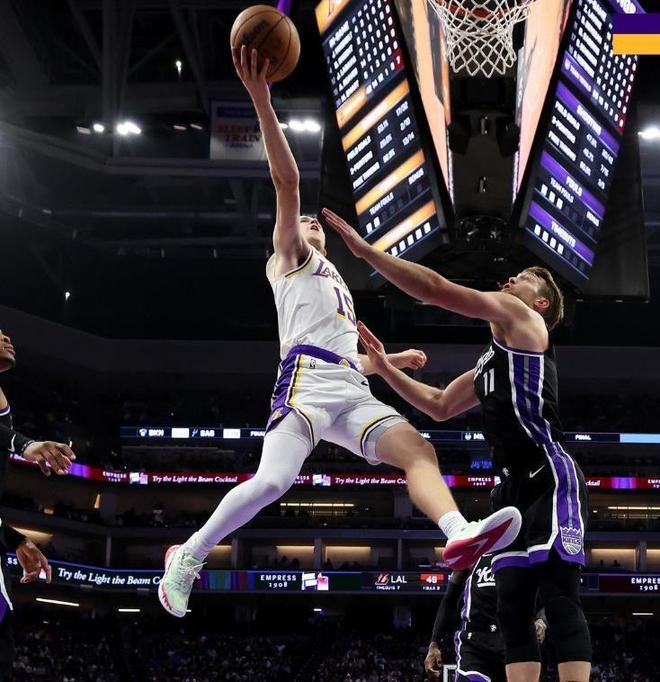 易边再战,比赛进入白热化。国王的拉文强攻内线,蒙克则在外线连续发炮。而湖人这边,几乎成了里夫斯的个人秀。他不仅能用犀利的突破制造杀伤,还完美地串联起了球队。第三节末段,里夫斯再连得5分,帮助湖人带着5分的微弱优势进入最后一节。决定胜负的第四节,国王上来就打出8-0的攻击波,再次反超比分。眼看局势危急,里夫斯彻底进入“炸裂”模式! 他连续命中3记不讲理的三分球,以一己之力打出11-0的回应,重新为湖人夺回主动权。国王并未放弃,一波10-3再次将悬念拉回。最后时刻,艾顿抢下关键的前场篮板,而里夫斯则稳稳地4罚全中,彻底锁定胜局。最终,湖人以127比120力克国王,收获两连胜。